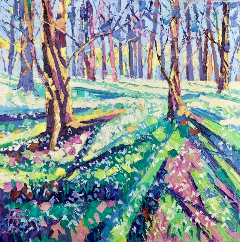 Vibrant, colourful and uplifting paintings are Fiona’s speciality. She paints in all media and enjoys painting outdoors in good weather. She uses a palette knife to create textured and colourful oils and acrylics.